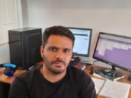 O artista explica que trabalha a partir da linguagem, como a própria linguagem estabelece uma comunicação com o espectador. A pintura não envolve pinceis e sim tinta derramada, uma tinta liquida que vou depositando na tela e acontece o escorrimento. Vou trabalho a inclinação do chassi para conseguir o resultado que quero”, explica.